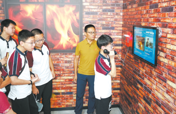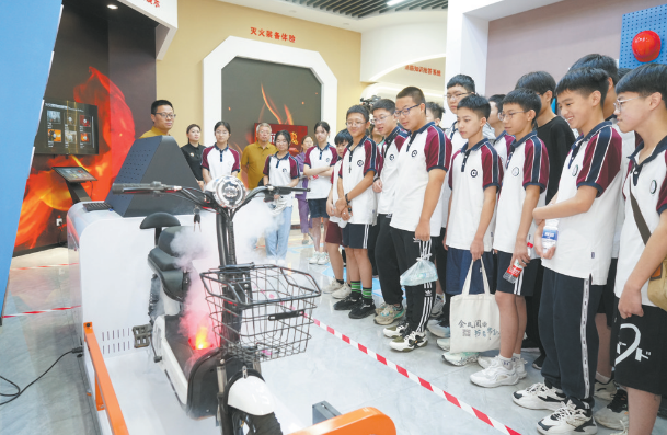 7月23日上午8时30分,在常熟市学生安全教育研学基地——市应急救援实训中心,市应急志愿者协会会长徐静霞正为周行中学的学生讲解如何预防火灾,这是市教育局组织开展的“小手拉大手·安全伴我行”暑期研学活动。该项活动以“VR体验+实景区域”的沉浸式培训方式打造全新的应急知识培训模式,助力更多孩子提升自我防护能力。