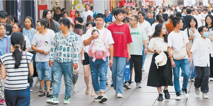 国庆、中秋长假期间,本市各大商圈人流如织,节日氛围浓厚。图:节日期间的方塔东街。