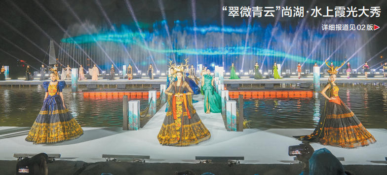 常熟日报讯(融媒记者张雨嘉)10月14日,“翠微青云”尚湖·水上霞光大秀在尚湖荷香洲举办。这场由常熟与金顶奖设计师刘薇联合打造的大型水上时装秀,在自然山水实景中完整地呈现了80余套融合东方美学与现代设计的原创作品,展现出时尚展演的新模式。