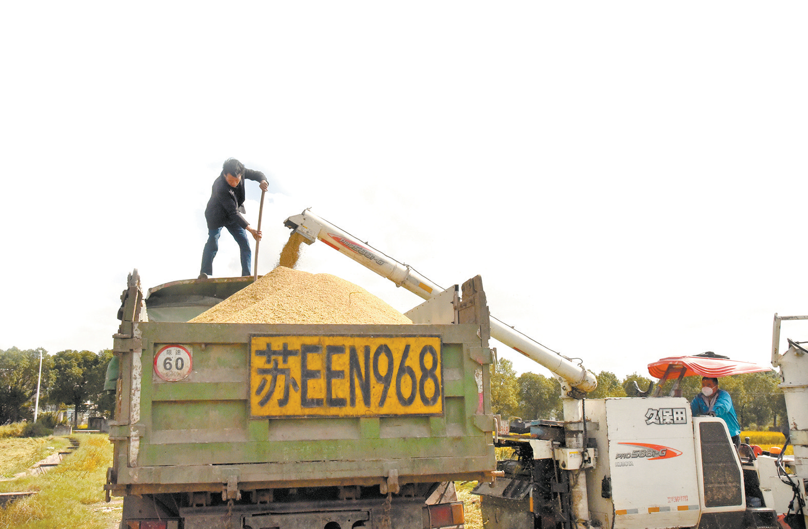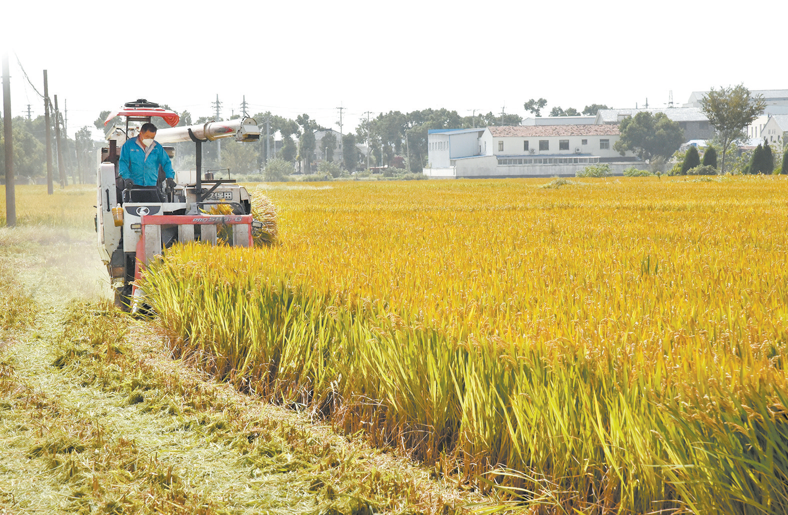 当天上午,尚湖镇水稻绿色高产高效创建示范片区内,4台大型联合收割机隆隆作响,驰骋在连片稻田里,所过之处,沉甸甸的稻谷被迅速收入仓中。据该区域的家庭农场负责人范卫明介绍,今年他种了300多亩繁种用的“常农粳14号”,已陆续成熟,当天开始规模化收割并可完成全部收割任务。根据目前的情况,预计亩产在650公斤左右。“这个产量来之不易。”范卫明解释说,今年水稻生育期遭遇了强对流和持续高温天气等不利因素,农场按照技术部门的指导意见积极应用缓释肥技术,在高温期间通过“日灌夜排”调节田间温度,后期加强水肥管理,最大限度地减轻了不利天气的影响,最终迎来丰收。为保障种子质量,农场在收割环节严格执行技术规范。针对前期降雨导致的零星倒伏情况,农机手选择合适的机型,提前精准调试设备,严格按照流程操作,最大限度地控制机损、减少杂质,全力确保颗粒归仓。