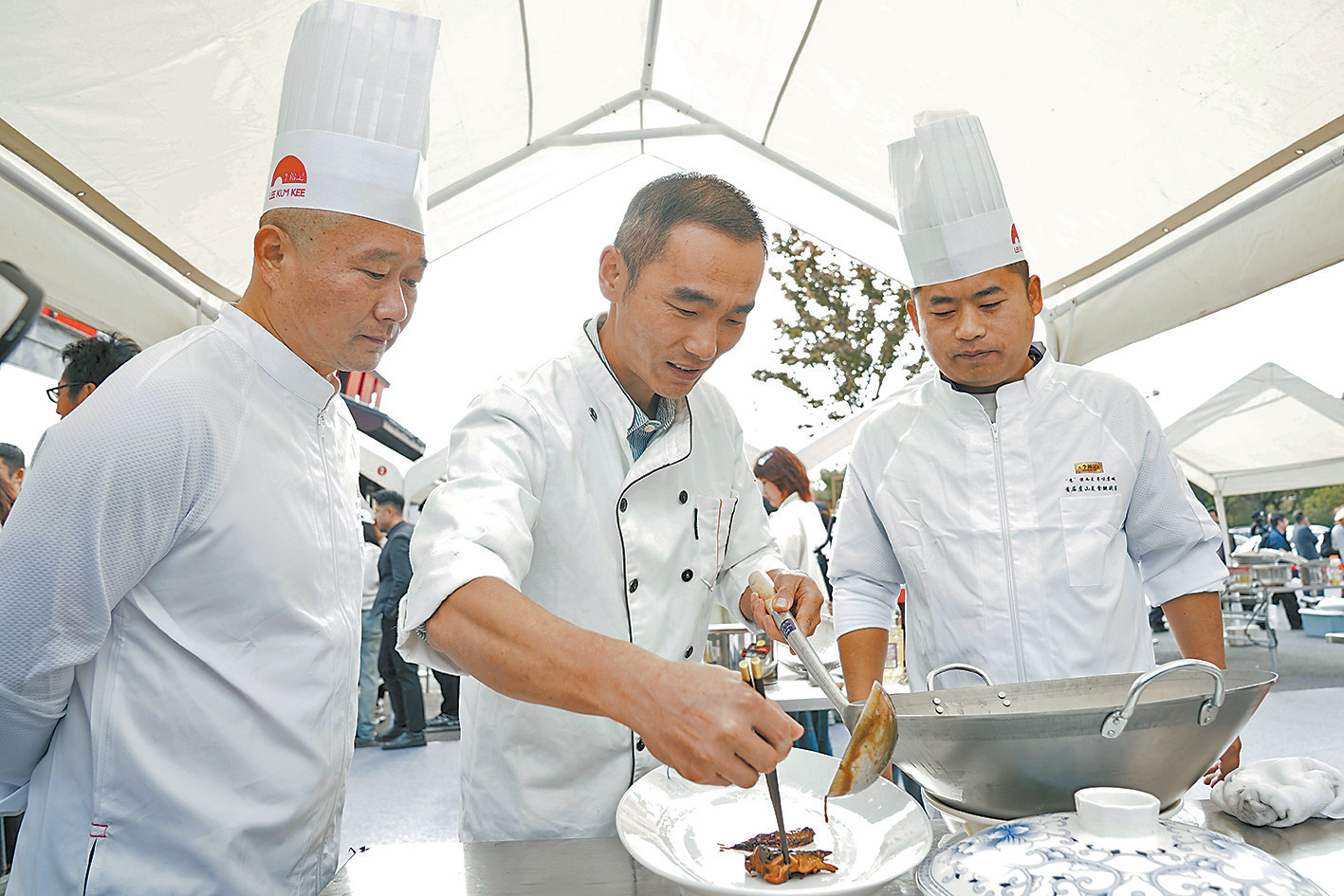 当天上午9时许,美食挑战赛、达人品鉴会、主题市集三大核心活动在王四酒家同步开启。美食挑战赛现场,37支参赛队伍各展匠心,展开了一场“舌尖上”的巅峰对决。灶台前火光闪烁,锅碗瓢盆奏响交响曲,参赛大厨们围绕“常熟必吃菜”“虞山招牌菜”“当季养生菜”“创意融合菜”“虞山特色菜”五大类菜品展开角逐。他们挖掘本地食材,在传承常熟蒸菜、叫化鸡等传统烹饪技艺的同时大胆创新,让每一道菜都成为山水灵感与人间烟火的深情对白。由中国烹饪大师领衔的专家评审团与自带流量的美食博主组成“赏味天团”,从烹饪技法、口感创新、文化表达等维度进行考评,既保证了菜品的专业水准,也兼顾了大众的审美喜好,让每道获奖菜品都实至名归,成为虞山味道的鲜活代言。“我最关注的是菜品能否承载‘地方风味美学’,令我欣慰的是,许多作品都做到了。它们将虞山的山水、人文巧妙地融于盘中,这才是地方美食最具魅力的文化表达。”注册中国烹饪大师、国家高级烹调技师常建忠说。