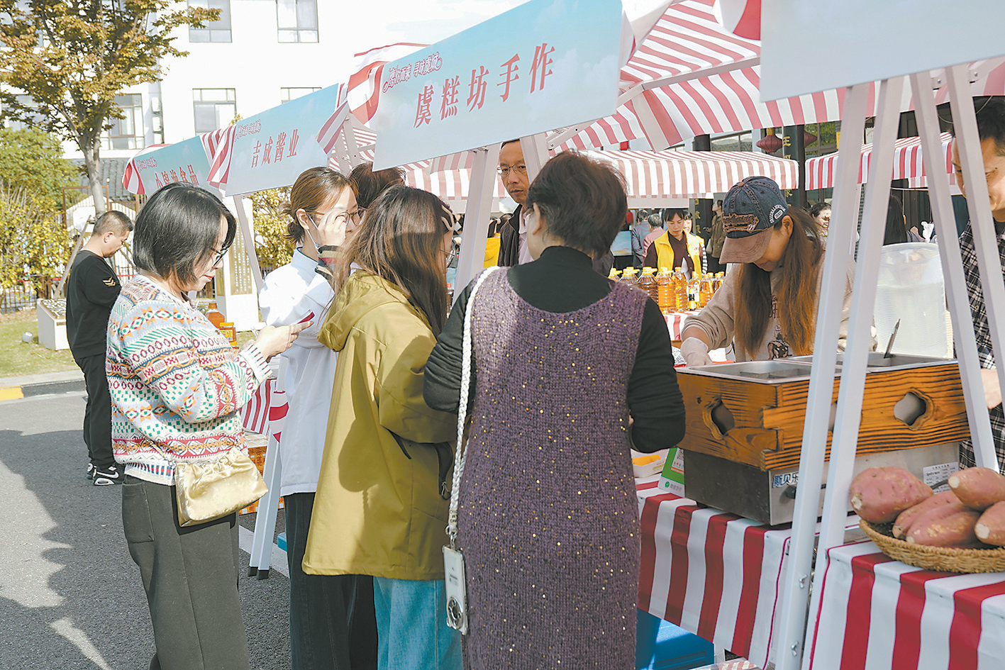 赛场之外,主题市集、美食达人品鉴会同样热闹非凡。姜太公酒坊、恒洋澳龙、小锦渔食品、妆点非遗宋锦手工等优质商家集中亮相,非遗文创与舌尖美味邂逅交融。现场设置的“虞山食材盲盒”挑战区、扫码投票抽奖区人头攒动,游客在品尝美食的同时沉浸式感受虞山文化魅力。市民蒋述英是一名户外运动爱好者,当天她刚爬完虞山,被现场热闹又充满创意的活动吸引,来市集采购风味美食。“这次活动不仅让我们本地人品尝到了很多地道的特色美食,也向外地游客展示了城市的独特韵味。”在蒋述英看来,美食可以跨越地域的限制,让不同城市的人了解本地的文化和生活方式,在美食品鉴中找到情感共鸣。