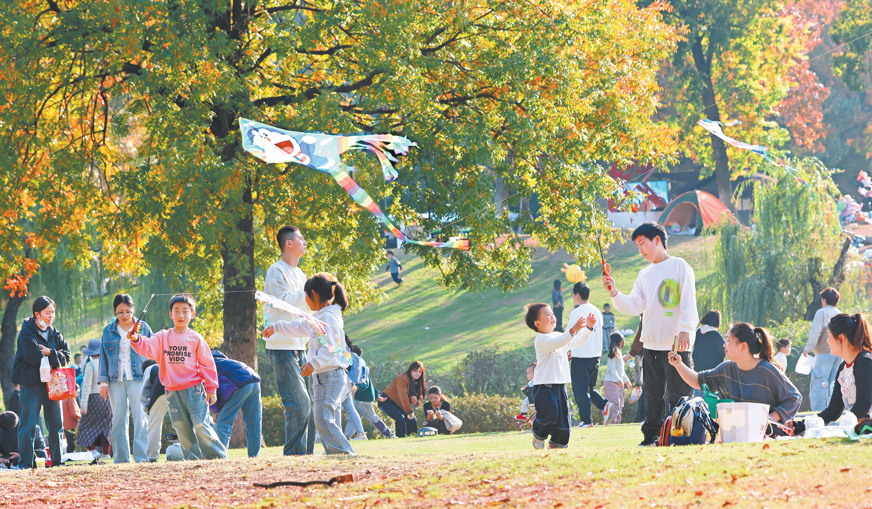 连日来,虞城天气晴好,众多市民走出家门沐浴阳光,享受惬意的时光。图:虞山公园内,游客在映山湖旁休闲游玩。