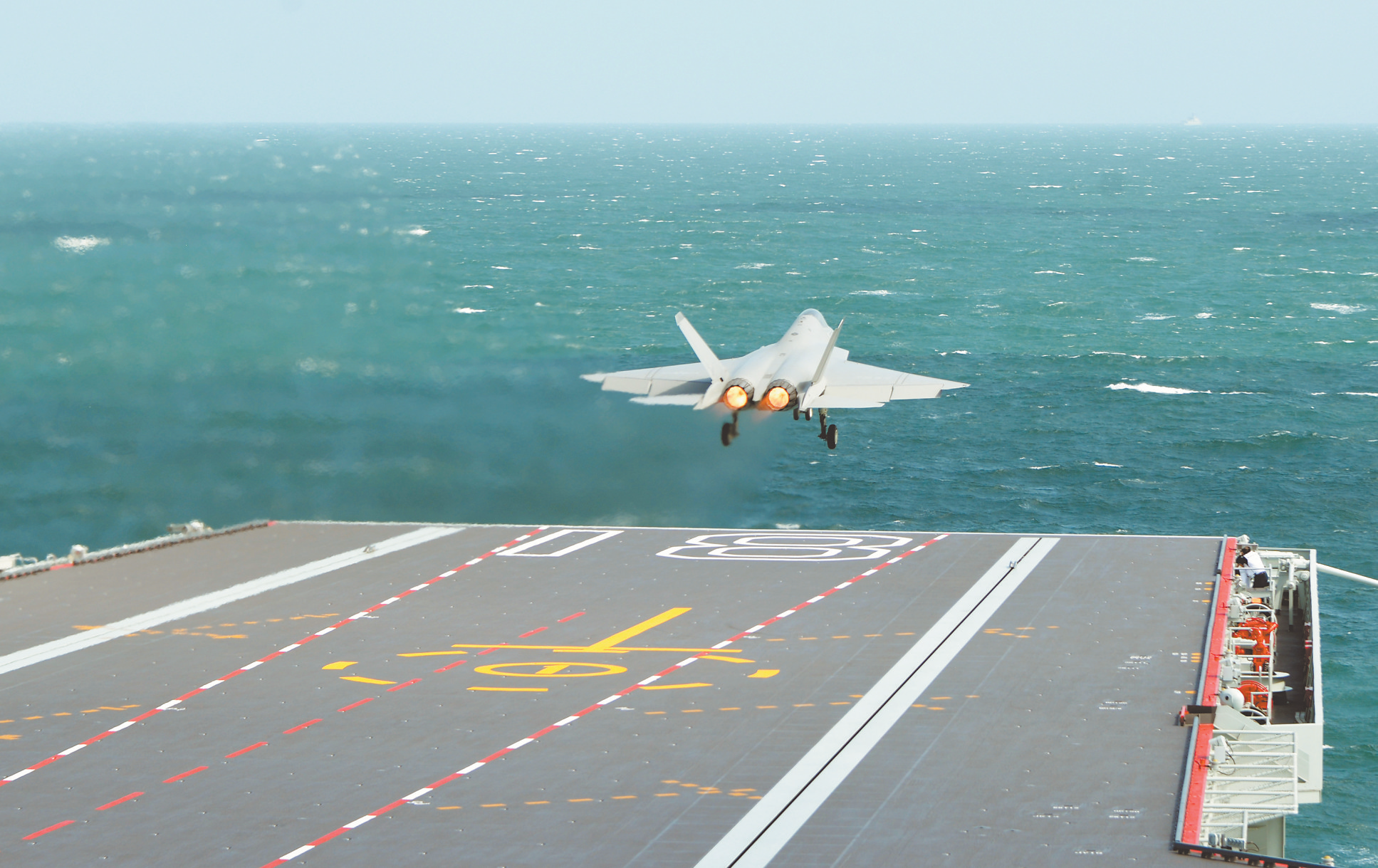 图:日前,海军福建舰开展入列后首次海上实兵训练。这是歼-35舰载机弹射起飞。新华社发