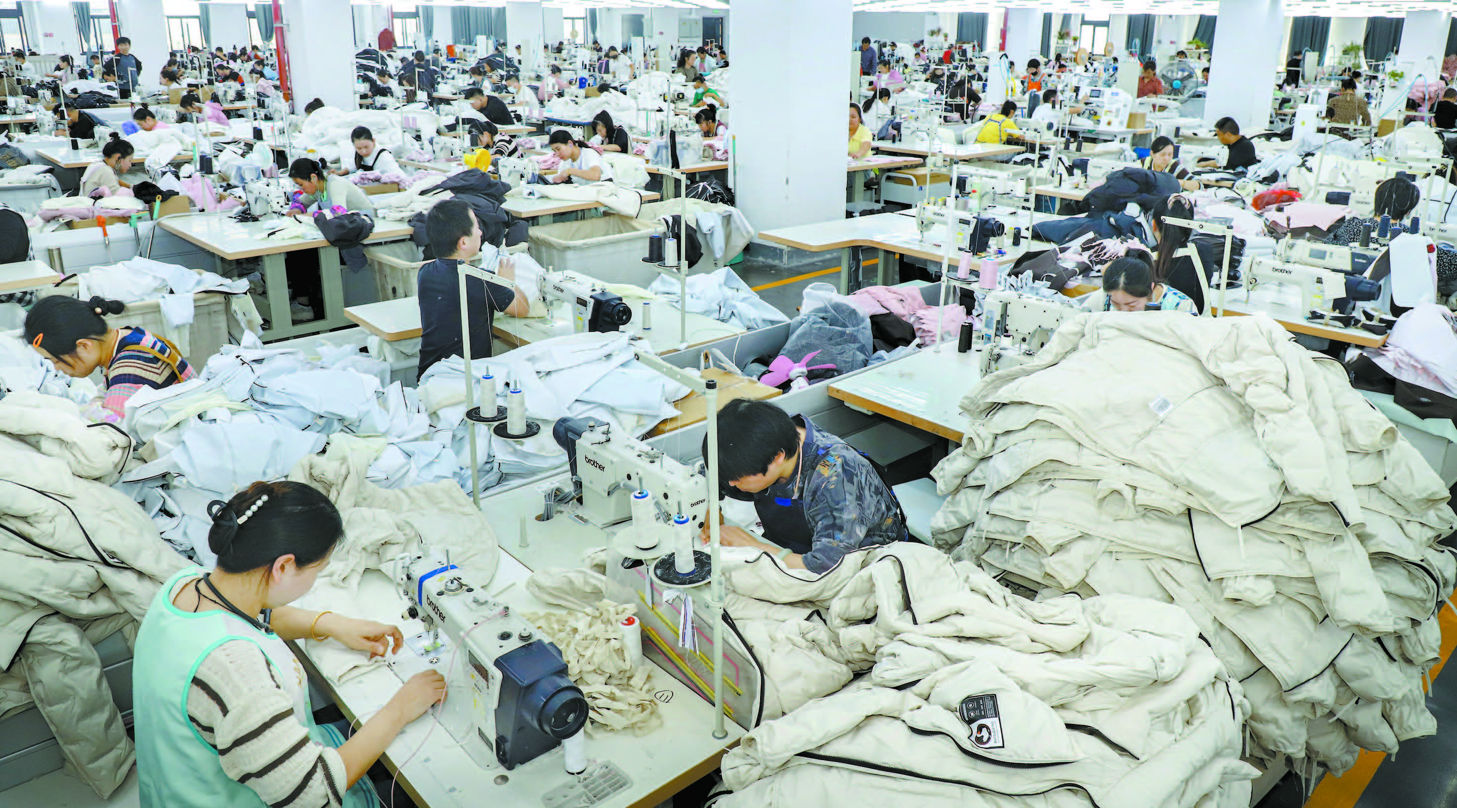 日前,本市部分服装企业迎来一年中最忙碌的时段。海虞镇一服装企业车间里,工人们正忙着赶制羽绒服。