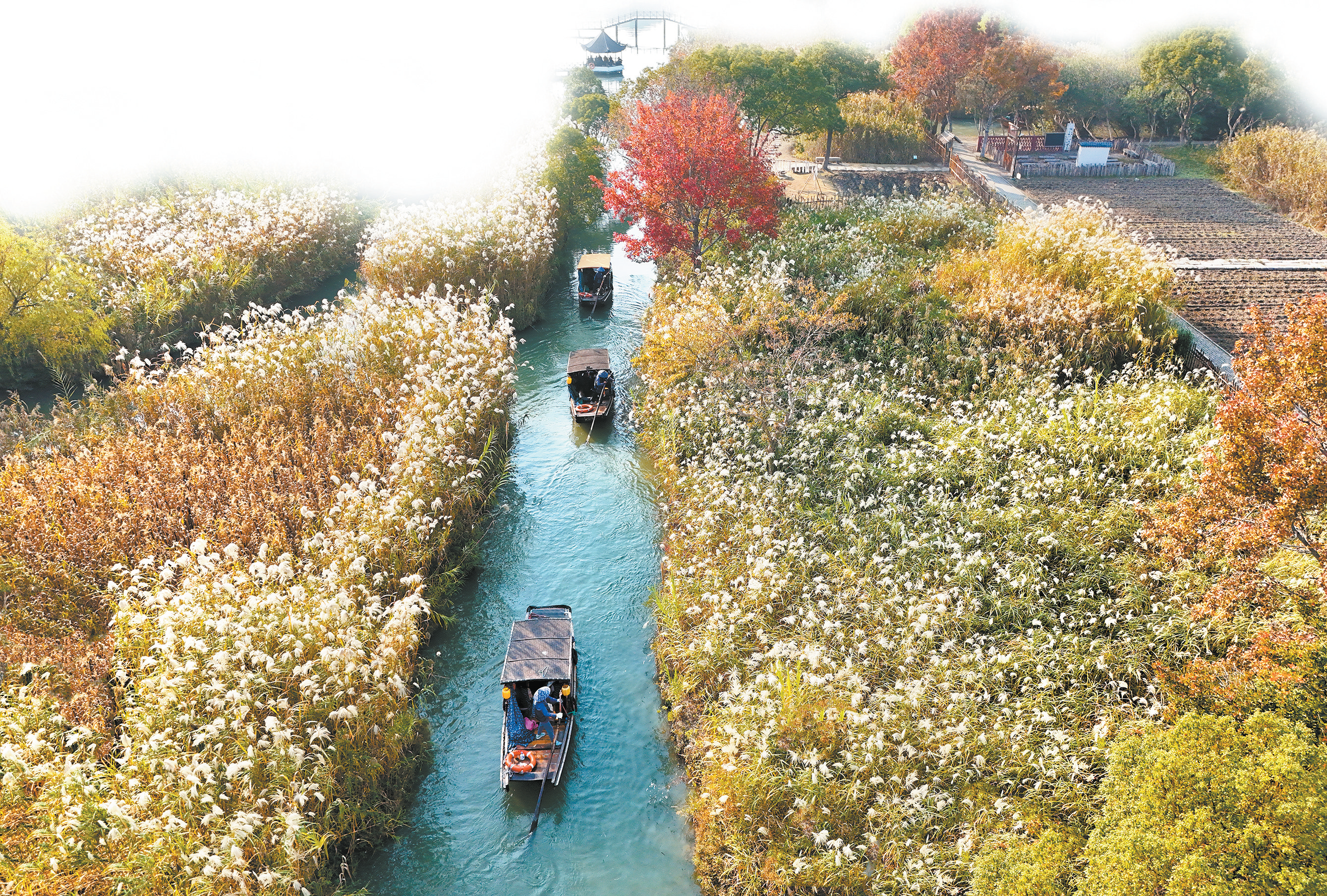金秋菊展仍留着最后一抹绚烂,文庙的古银杏却已洒下满地金黄,与虞山层林尽染的红枫相映成趣。琴湖碧波倒映晴空,沙家浜的芦花在湖畔盛放,勾勒出诗意的线条。尚湖的水上秘境烟波轻笼,平添几分初冬的朦胧。