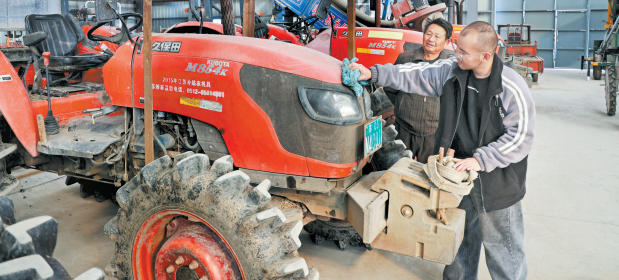 日前,古里镇坞坵村农机库内,工作人员正在为入库的农机擦灰除尘,精细保养。坞坵村共有各类农机42台套,秋收秋种结束,该村及时做好农机“冬歇期”管护工作,为明年春耕保驾护航。