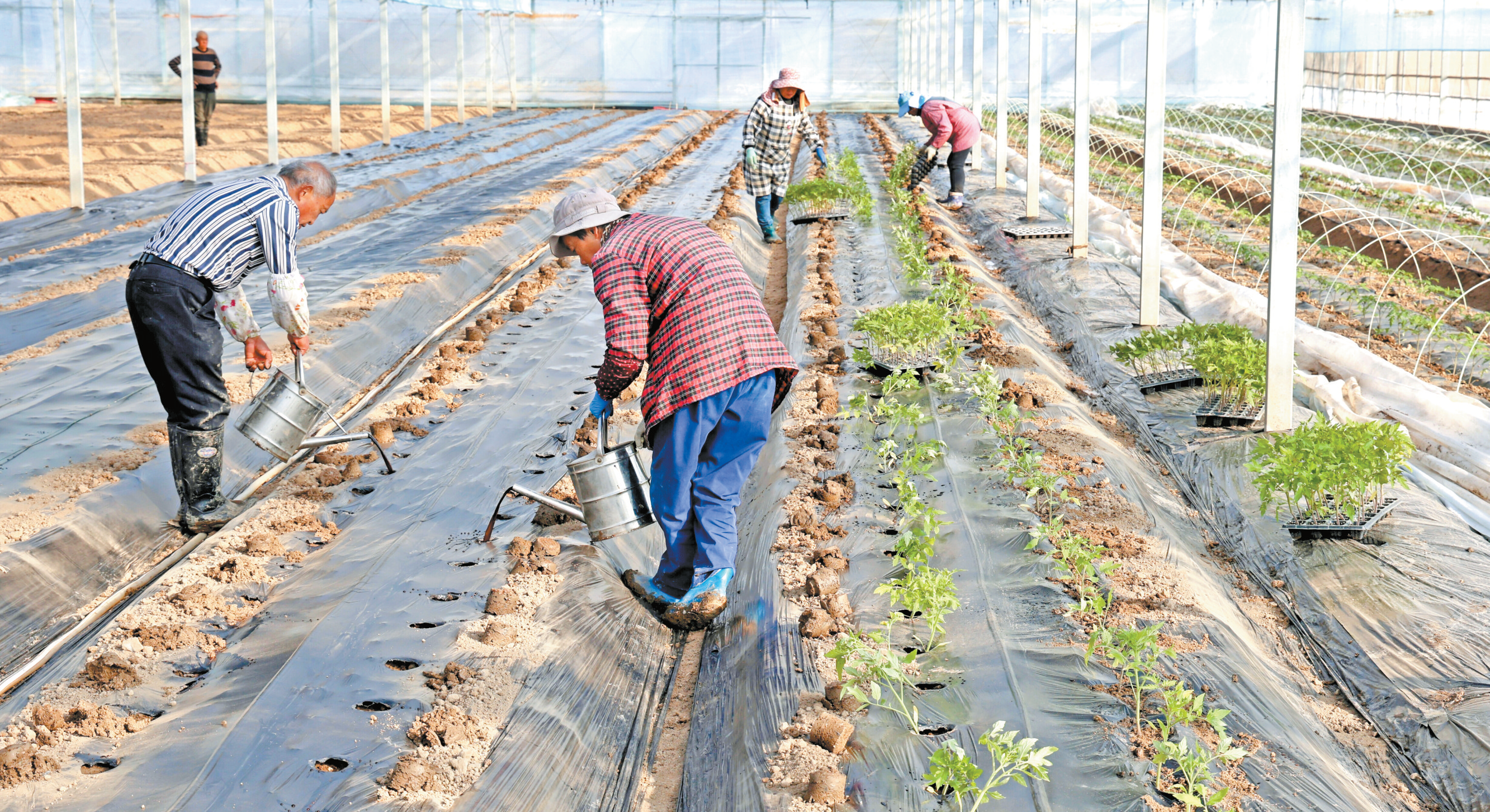日前,常熟市金辰农场大棚内一派繁忙景象,菜农们施肥、栽种、浇水,做好蔬菜种植和管护,为实现丰产增收夯实基础。