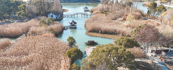 冬日的沙家浜风景区芦苇荡,芦花已褪尽金黄,转为素雅的银白,如羽如雪,在微风中摇曳起伏,一幅江南水乡冬日画卷徐徐展开。