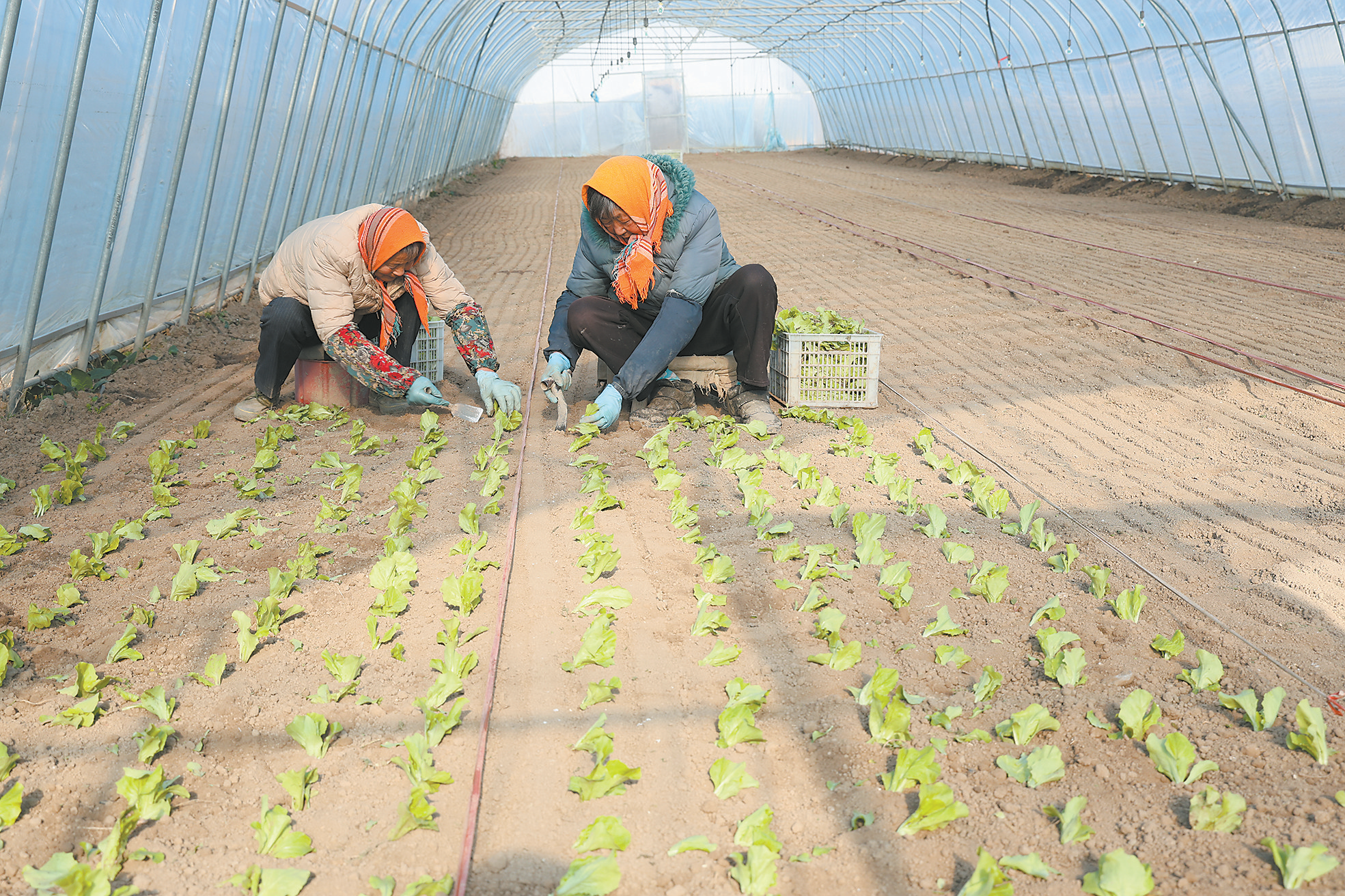 2月8日,古里镇康博村蔬菜基地,菜农正在种植生菜。
