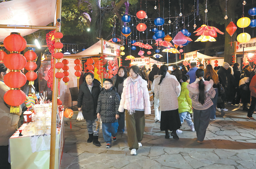 老县场·复古年味市集里,老物件、老味道、老游戏悉数登场,仿佛把人们拉回上世纪80年代的年集。方塔园内,原点市集好物云集,不少人正淘一份温暖的年礼。《方塔传奇》投影秀精彩回归,光影变幻间,惊叹声此起彼伏。今年新增的自贡花灯惊艳亮相,赏灯猜谜的人群络绎不绝,欢声笑语洒满园中。