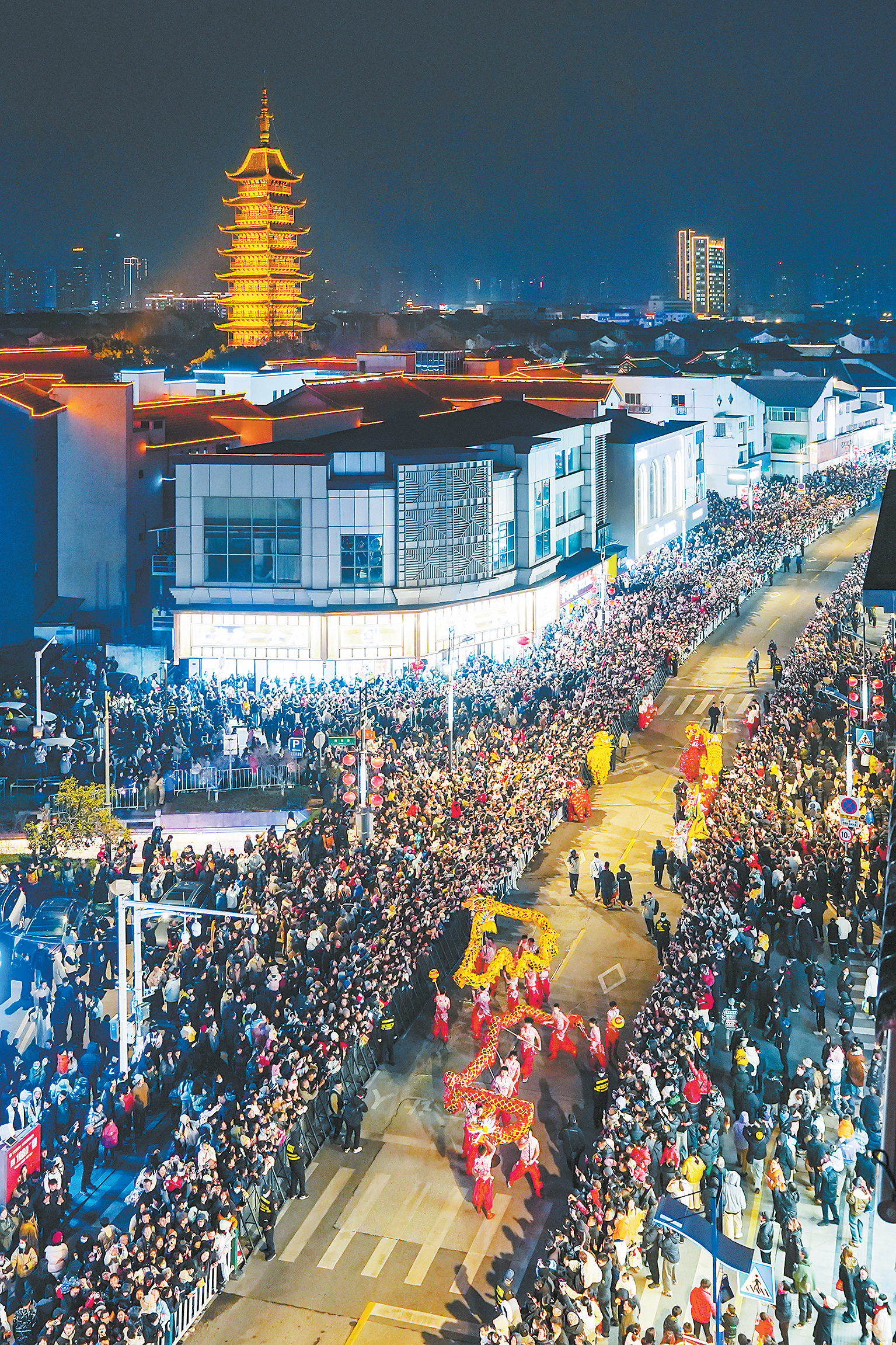 这一夜,热闹不止在方塔街,商圈里的节日热潮同样涌动。