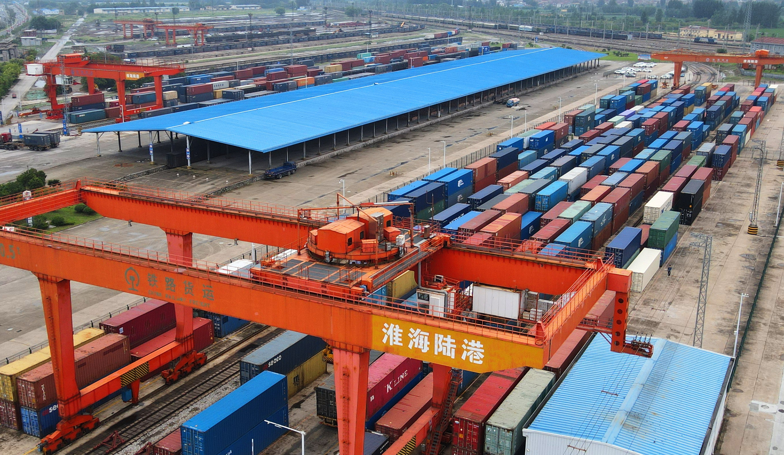 站在徐州对外开放的重要门户——淮海国际陆港铁路集散中心,目之所及,一派繁忙景象。