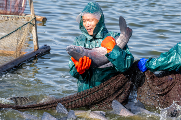 甘露青鱼品质保障成为其第二个“破圈”秘笈。2024年12月,在第二十一届中国国际农产品交易会上,甘露青鱼上榜中国农业品牌目录2024区域公用品牌名单,为无锡农业品牌矩阵再添沉甸甸的国字号“金招牌”。“通过规模化经营,将青鱼的养殖模式从传统转变为现代化,积极拥抱现代化水产养殖技术,有力地为消费者筑牢了食品安全防线。”金荡实业投资有限公司副总经理吴阳清说,作为甘露青鱼核心产区及品牌发源地的无锡现代渔业文化产业园,拥有约400亩高标准养殖水域,通过精细划分养殖区域,控制养殖密度,引进智慧数字渔业系统,将以往养殖“靠天吃饭、用眼看、凭经验”方式转变为数字化智慧管理,助力甘露青鱼精品化养殖,使甘露青鱼的品牌信誉更稳固,“在农历春节前,产业园预计能产出甘露青鱼50万公斤。”