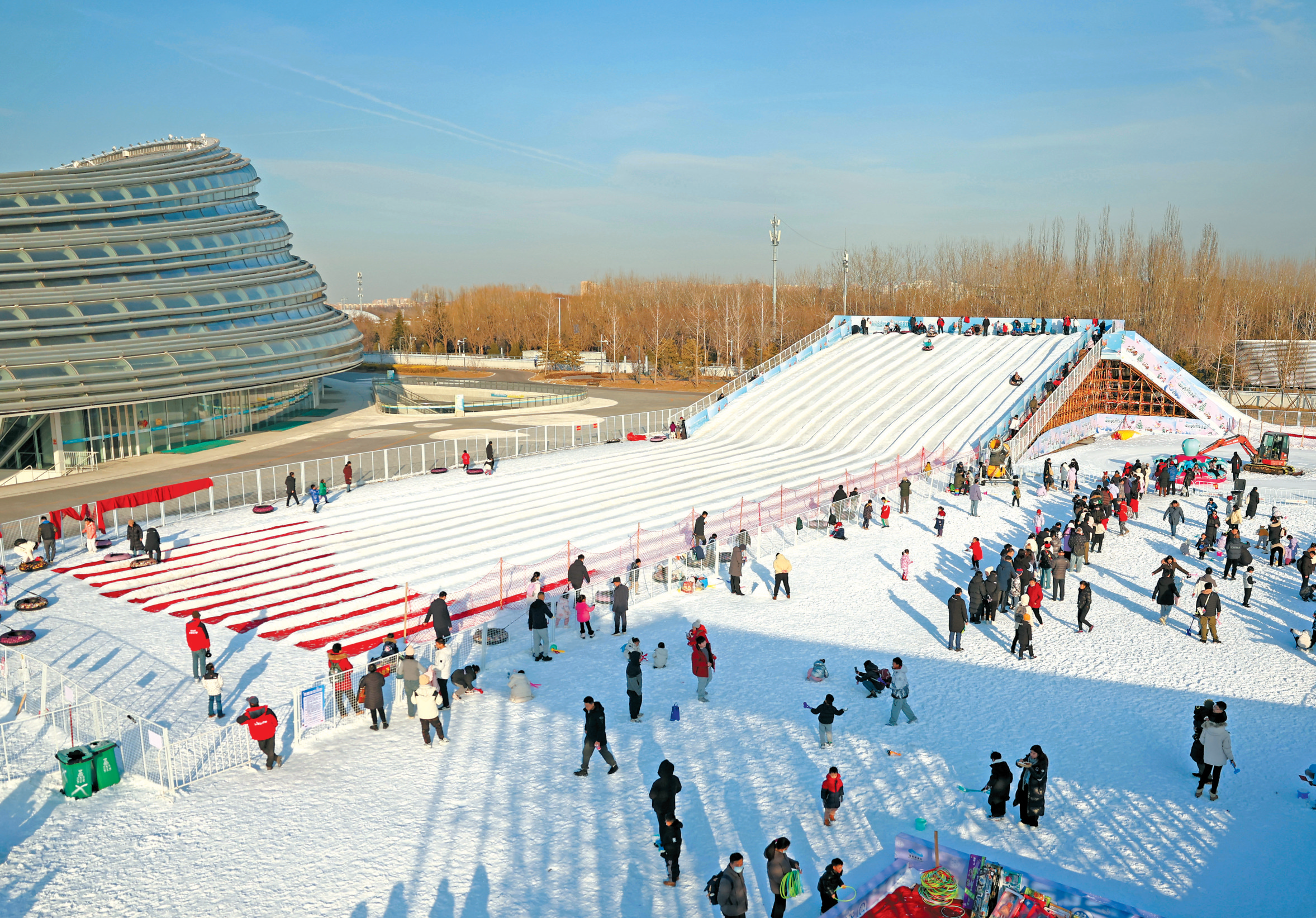 游客在国家速滑馆“冰丝带”冰雪狂欢季活动中体验雪上游乐项目(1月4日摄)。