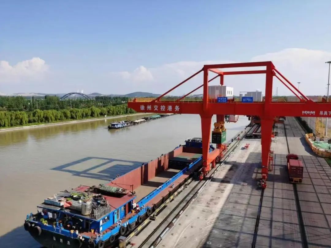 包括双楼作业区在内的徐州港是全国内河十大枢纽港之一,被称为“京杭运河第一港”。紧邻作业区的双楼物流园区是徐州“3+8+N”物流枢纽体系中的3大核心物流枢纽之一。铁路专用线的开通,不仅实现了徐州区域与满洲里、二连浩特、霍尔果斯等铁路国际口岸的连接,还创造了“一条铁脊通两港”的运行模式,铁路货物可搭乘铁路专用线“翻山越岭”到达双楼作业区,在双楼作业区直接“下水”,快捷、高效发往目的地。