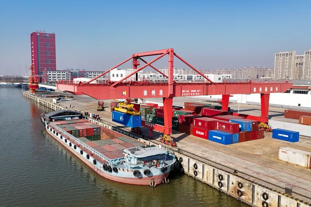 “我们已开通5条外贸航线和18条内贸航线,建成30个2000吨级泊位、6条铁路卸车线,具备1400余万吨设计作业能力,构建了东西互联、南北互通、通江达海、面向全球的水运物流体系。”徐州港务集团双楼港总经理助理熊鹰自豪地告诉记者,去年全区集装箱吞吐量达到9.1万标箱,进出口总额增长8.4%,为徐州打造更具竞争力的枢纽经济新高地贡献了优质增量。