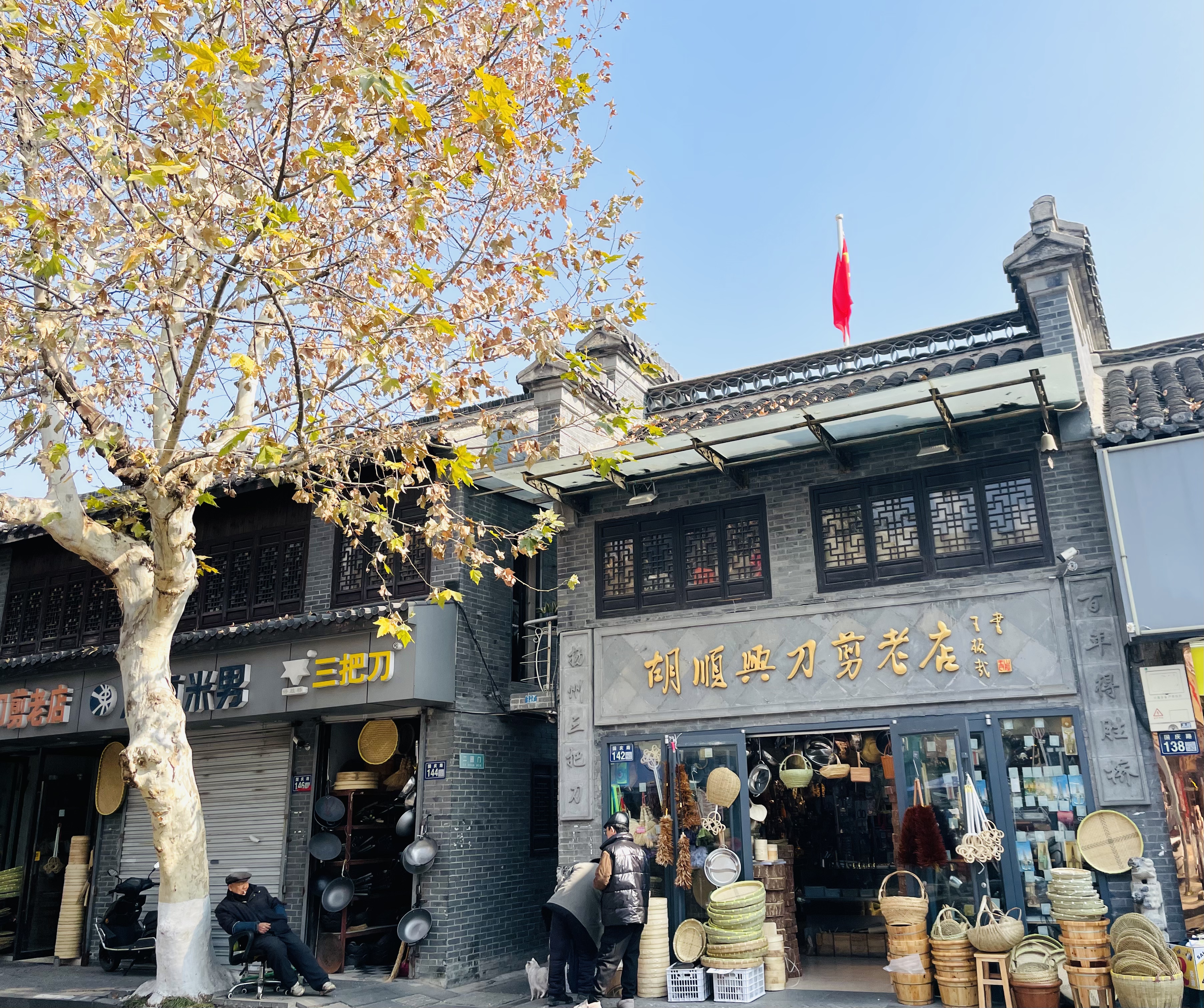 冬日的国庆路人流不息,紫罗兰理发厅、富春茶社、扬州浴室等百年老字号扎堆,这里是“扬州三把刀”技艺精髓所在。中国美发大师仇庆芳此前参加电视剧《繁花》拍摄,带动省级非物质文化遗产扬州“三把刀”火爆出圈。环顾不大的店面,老式理发椅、剃头推子、旧照片……每样老物件都保留着原汁原味的复古气息。
