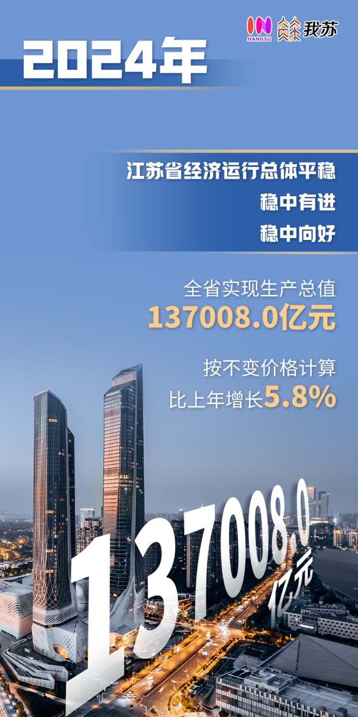 总的来看,2024年全省经济运行总体平稳、稳中有进、稳中向好,高质量发展扎实推进,“强富美高”新江苏现代化建设迈出新的坚实步伐。