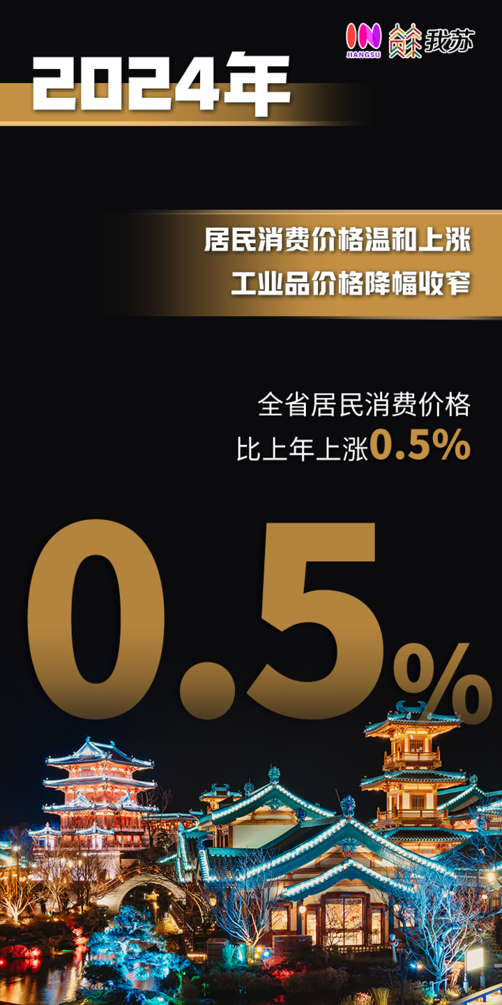 居民消费价格温和上涨,工业品价格降幅收窄。2024年,全省居民消费价格比上年上涨0.5%。全省工业生产者出厂、购进价格同比分别下降2.6%、2.1%,降幅比上年分别收窄0.7个、1.5个百分点。