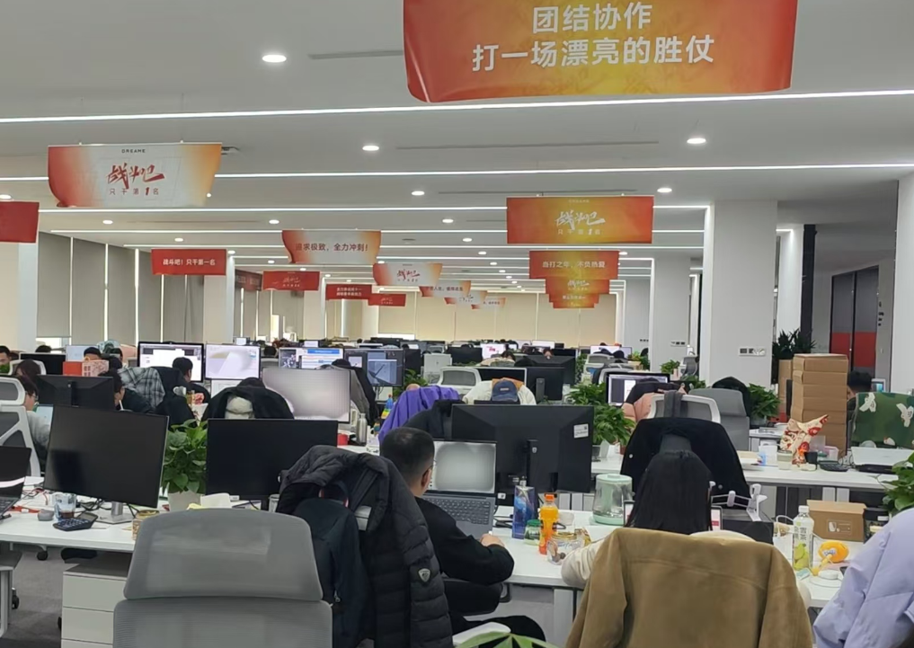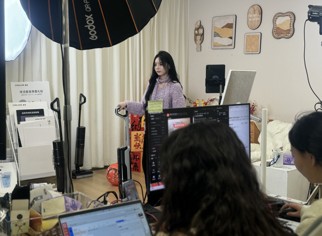 临近春节,位于苏州吴中的追觅科技园内,依旧十分忙碌。在追觅科技(苏州)有限公司销售团队办公区,大家热烈地讨论着新春营销活动方案。直播间内热火朝天,主播带着各类产品轮番“上链接”,人气旺盛。