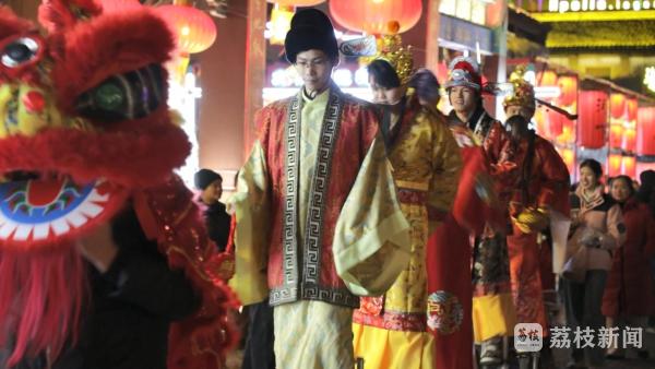位于里运河之畔的淮安河下古镇,是一个距今有着上千年历史的古镇。今年春节,河下古镇推出了鱼灯巡游、水上小大姐、古装电音摇、花船游河等丰富多彩的沉浸式夜游活动。市民游客在逛古镇、赏美景的同时,能够在这些极具传统元素的活动中,感受到千年古镇的文化魅力。“非常热闹,我们一路走来,原本这一段路十分钟走完的,可能一个小时也走不完。”市民钟天泉一步三回头,流连忘返。