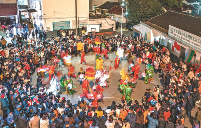 “快点来,咱们一起去沾沾‘太平龙’的喜气!”大年初一到初三,在无锡惠山区天上村前历史文化街区,有着450多年历史的“村前太平龙”在空中翻腾起舞,气势磅礴。民俗贺春,吸引大批市民游客感受传统中国年的独特魅力与浓厚氛围。