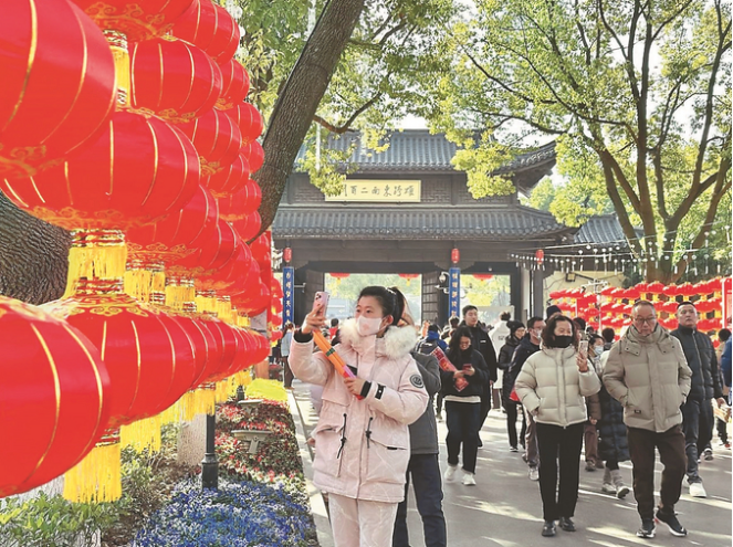 在金山景区大道上,“白娘子”“小青”“许仙”从人群中走来,游客不仅能参与沉浸式表演,还可参与集章、领取金山祈福伴手礼;在焦山景区,“乾隆”巡游队伍浩浩荡荡,演员们不断和观众互动;北固山景区的“刘备招亲”大型实景演出现场,“刘备”“孙尚香”与游人对诗词……文化典故花样“演绎”、红红火火,传统文化焕发新意。