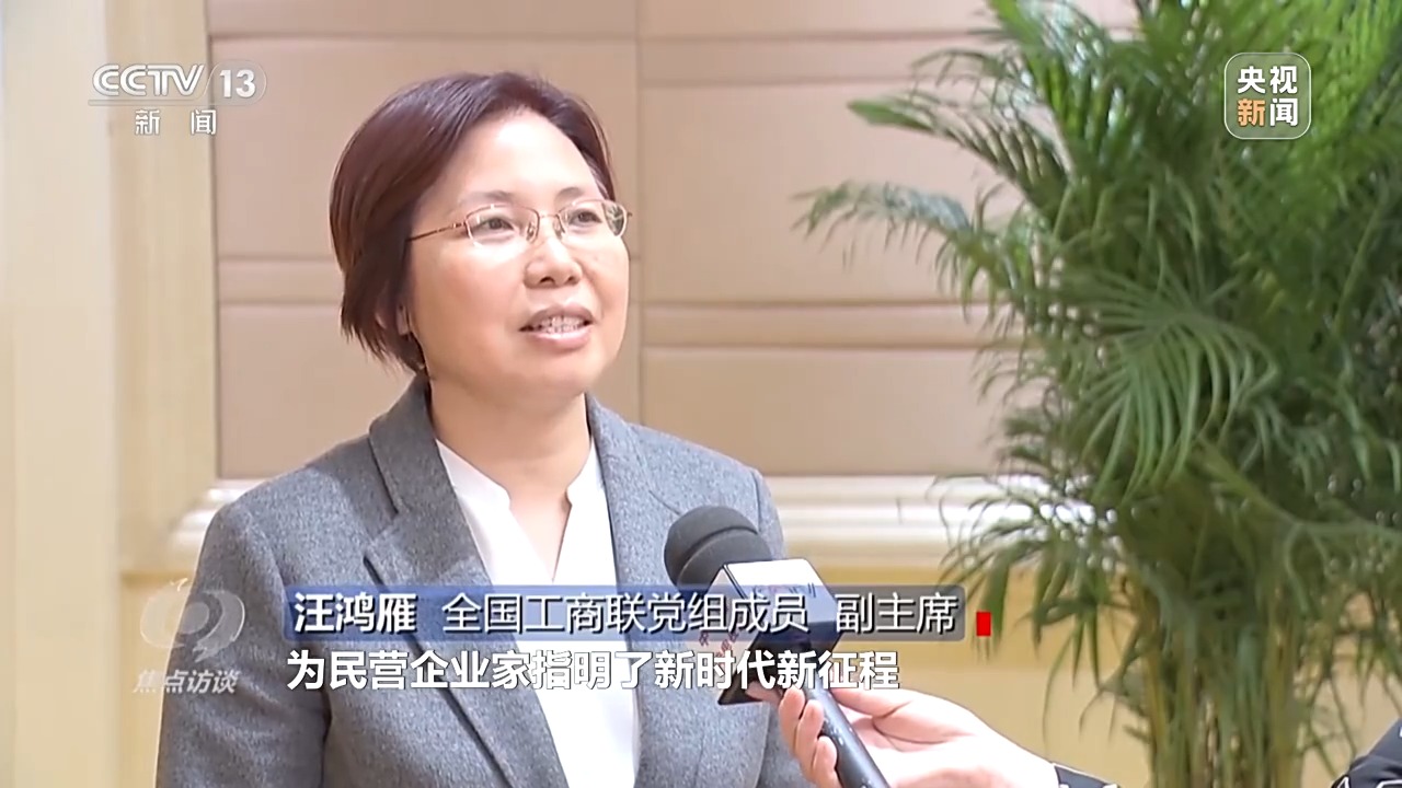 全国工商联党组成员、副主席汪鸿雁:“总书记的重要讲话,为民营企业家指明了新时代新征程开拓创新、实现高质量发展的努力方向。民营企业在经营发展过程中碰到这样那样的困难、问题,要保持定力,苦练内功,把思想和行动统一到党中央对经济发展的决策部署上来,敢闯、大胆干,不躺平、不退缩,坚定走高质量发展之路。”