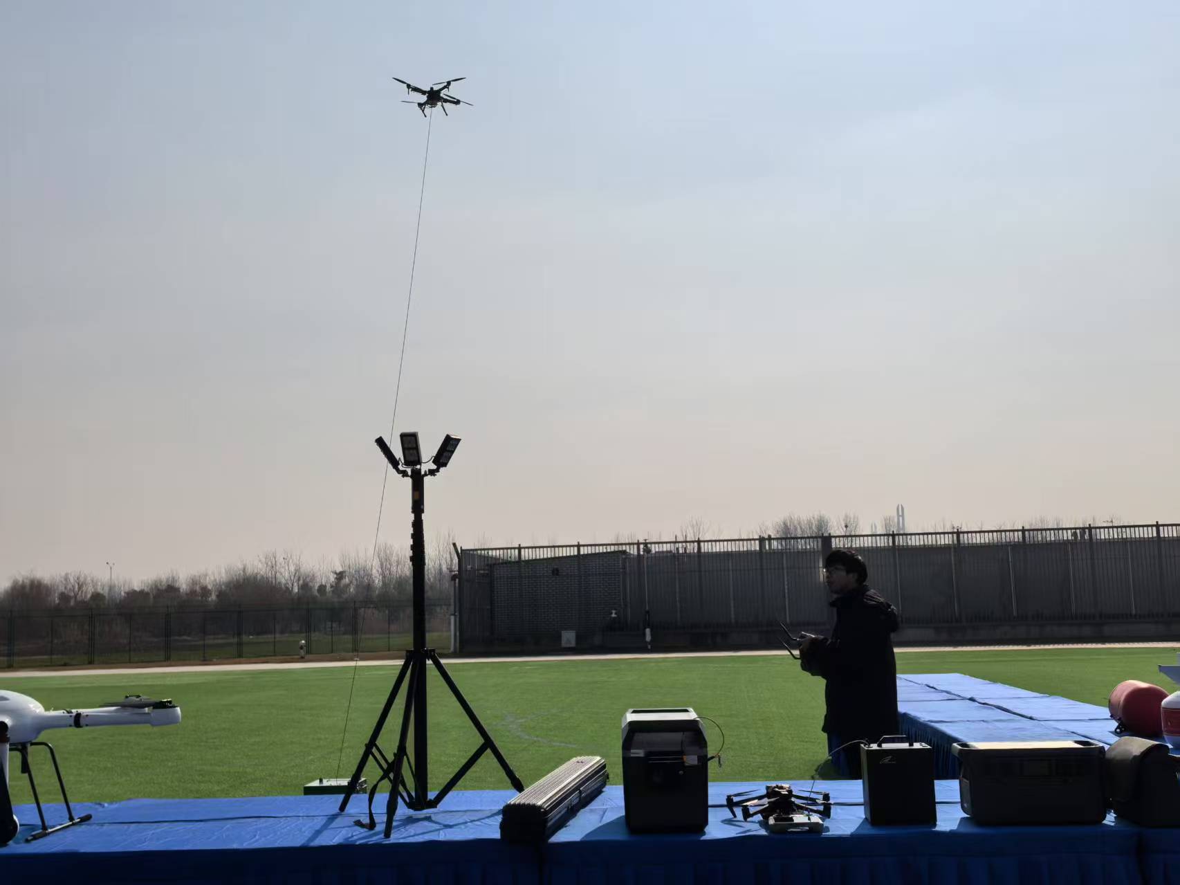 2月10日,浦口区南京民用无人驾驶航空试验区西江基地,一片宽阔的草地上,一架无人机缓缓升起飞向空中。然而,与传统无人机不同的是,它的身上连着一根长长的线缆,一直连着放在地上的系留箱。
