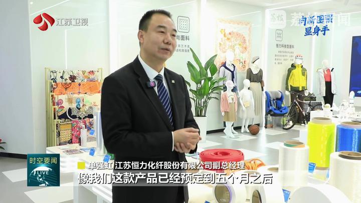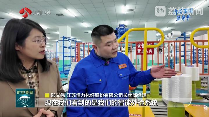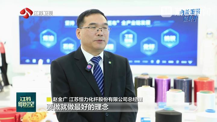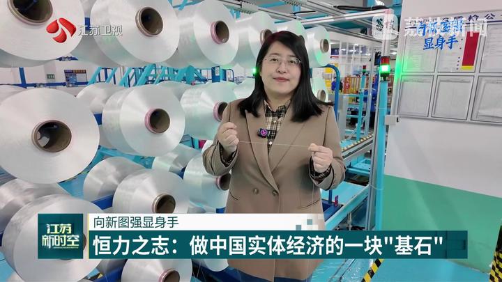 江苏台记者郭艺说:“一根丝能有多强?在恒力苏州产业园的生产车间,记者手上这股工业丝也就比头发稍微粗一些,但它能吊起1吨的重量。从这里生产的高性能工业丝,既是恒力的拳头产品,也是行业的‘全球销冠’。”