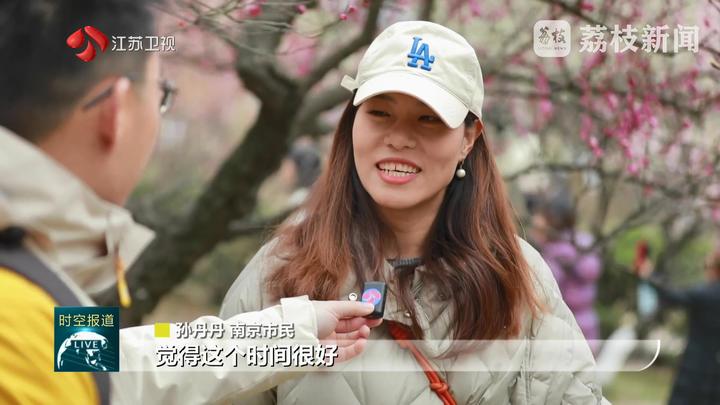 江苏台记者黄蒙说:“这个周末天气晴好,南京古林公园2000多株梅树是陆续盛开,目之所及红粉白等各色梅花争相竞放,满园的清香更是沁人心脾,吸引了众多市民游客踏青赏梅。”