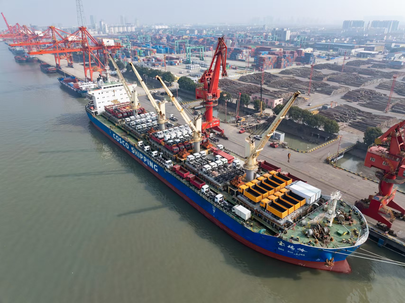 交汇点讯 3月1日,一批146辆以中国一汽、中国重汽集团为主的工程车辆等设备在张家港海事局的精心保障下,搭乘“宝瑞岭”轮从张家港港务集团码头启航,将驶往“一带一路”共建国家坦桑尼亚达累斯萨拉姆港及肯尼亚蒙巴萨港,标志着张家港正式开通一条中非“一带一路”贸易新航线。