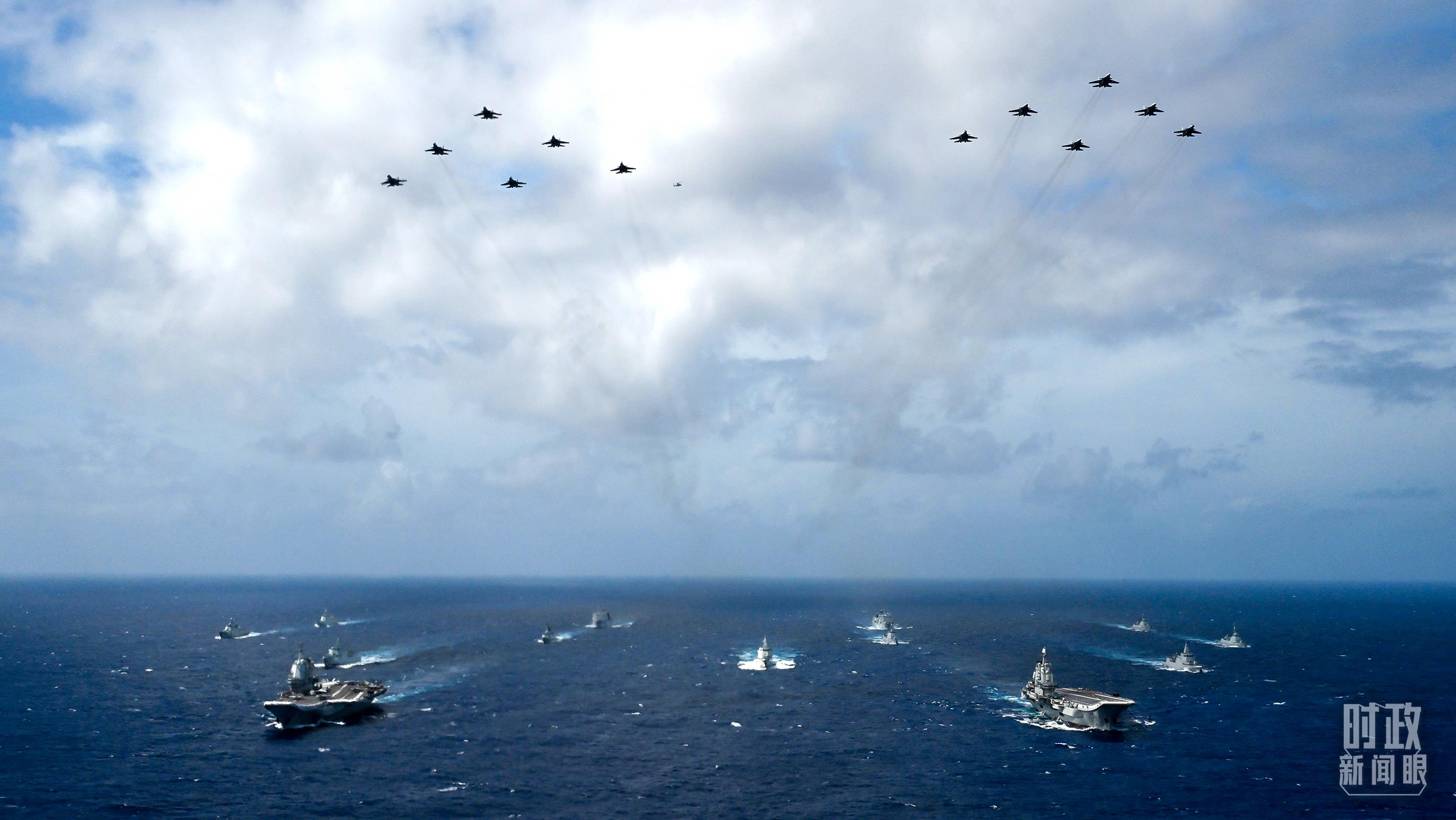 △2024年10月21日,辽宁舰、山东舰编队双航母编队演练。(图/视觉中国)