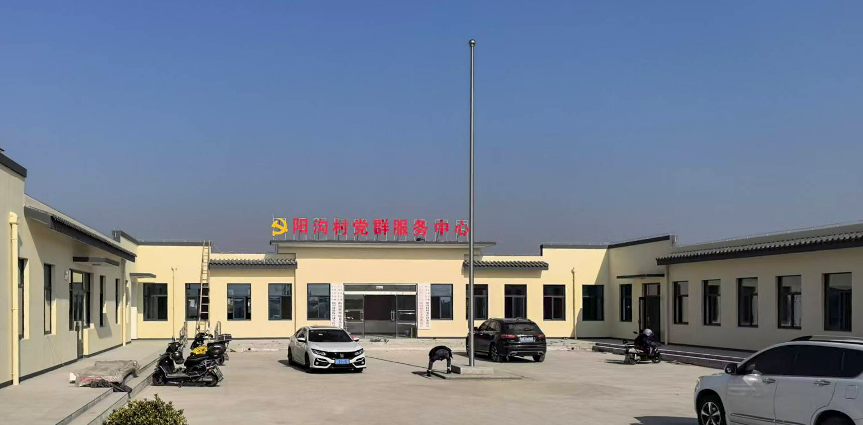 沿着阳沟村六号河路,记者来到新落成的党群服务中心,施工人员正在进行扫尾施工。“新的党群服务中心投用后,村民可以来这里就医、办事、休闲娱乐等,我们提供‘一站式’服务。”村党支部书记徐志军介绍。