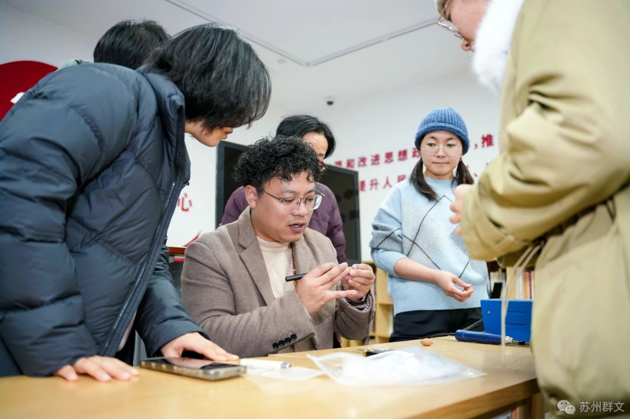 3月17日,“00后”上班族胡宇泽刚结束一天的工作,便迫不及待地赶往苏州公共文化中心(苏州文化馆),参加晚间时段的公益培训——“品苏·夜课堂”。当晚,他上的是一堂期待已久的核雕课。胡宇泽对核雕的兴趣,源于中学语文课本上的一篇古文《核舟记》,小小桃核上一船、五人、八窗,人物栩栩,妙趣横生。如今终于有机会亲身体验这门古技艺,胡宇泽的内心充满兴奋。