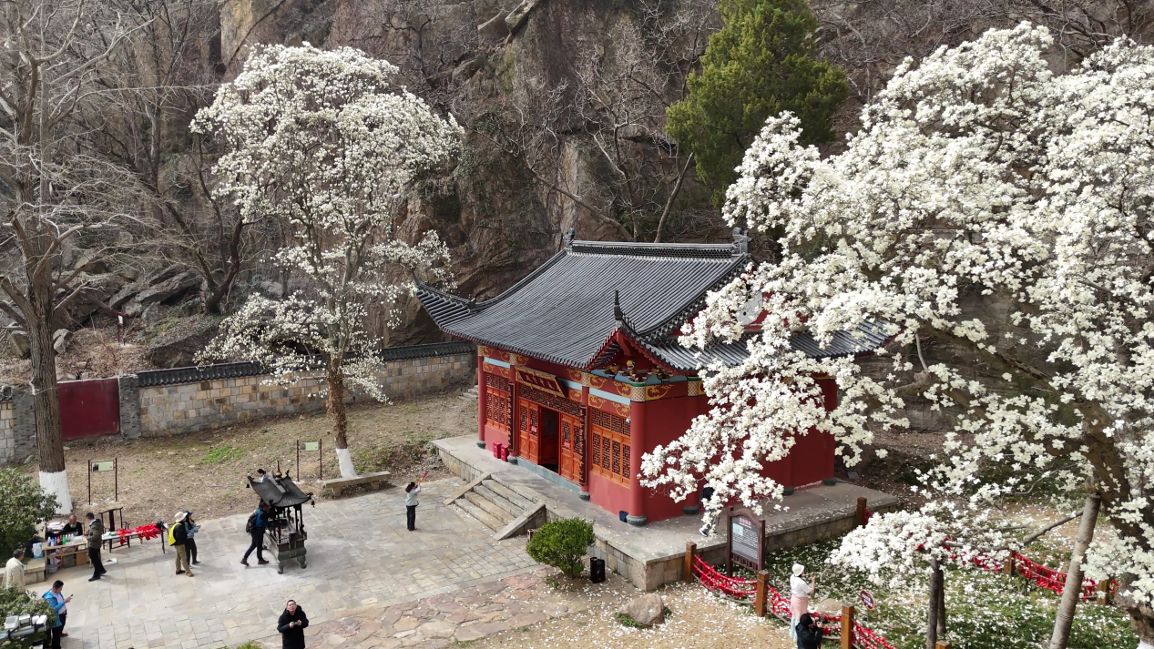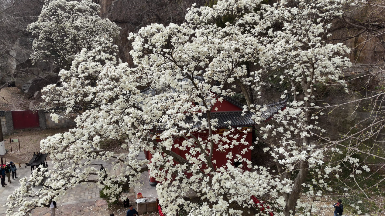 玉兰花是连云港市花,中国现存最大的古玉兰群落位于连云港南云台林场东磊分场延福观,被誉为“中华玉兰花王”的古玉兰树,历经800余年风霜,如今依然散发着“青春”的勃勃生机,千姿百媚的花朵缀满枝头,清香四溢。微风拂过,洁白如玉的花瓣纷纷扬扬飘落,仿佛下起了一场浪漫的花雨。