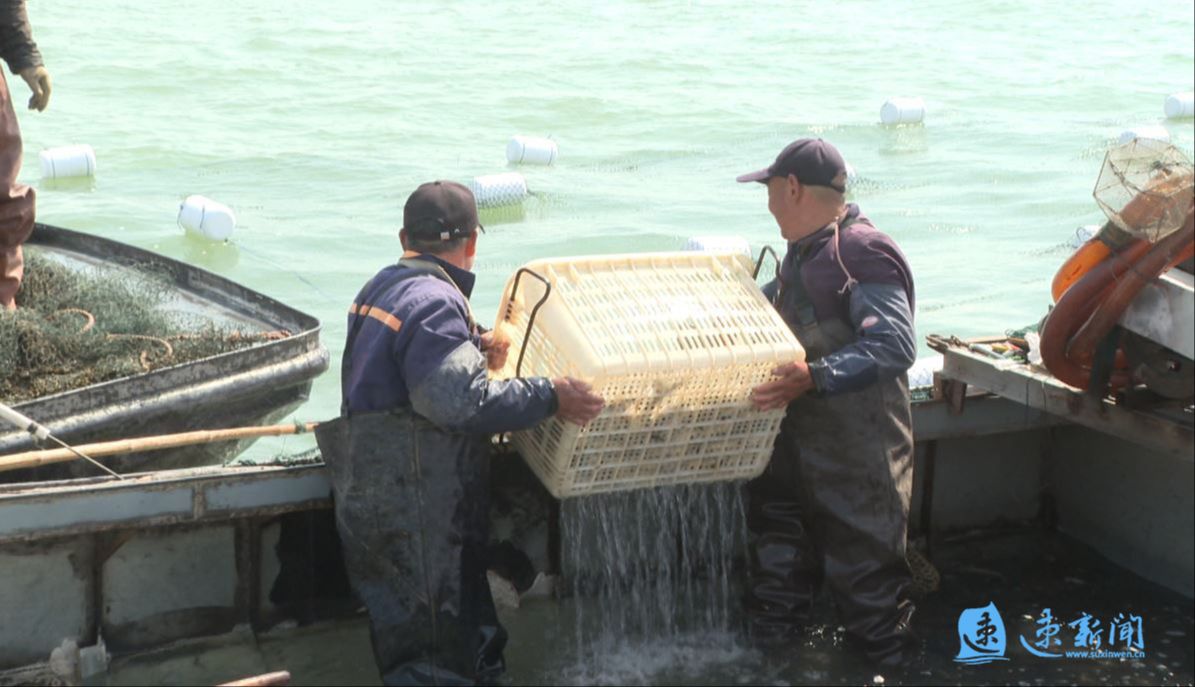 在骆马湖的网箱养殖区域,珍珠般的网箱整齐排列,随波轻轻荡漾。渔民们身着防水服,手持渔网,争分夺秒地投放鱼苗。渔民陈安岭一边忙碌一边介绍:“投放花鲢是为了净化水质,水质好了,大家都受益。一般正常情况下要投放五六百斤,要是天气好,10天左右就能完成投放。”记者了解到,这些鱼苗可是骆马湖生态平衡的“大功臣”,能有效控制藻类生长,守护湖水清澈。