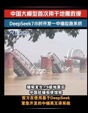 缅甸7.9级地震发生后,关于灾情的消息牵动着全世界的神经。在争分夺秒的救援行动中,一个由中国团队基于大模型技术紧急开发的中缅英互译系统,意外成为舆论关注的亮点。近日,话题#DeepSeek7小时攻克缅甸救灾语言关#冲上微博热搜,引发大量网友点赞与讨论。