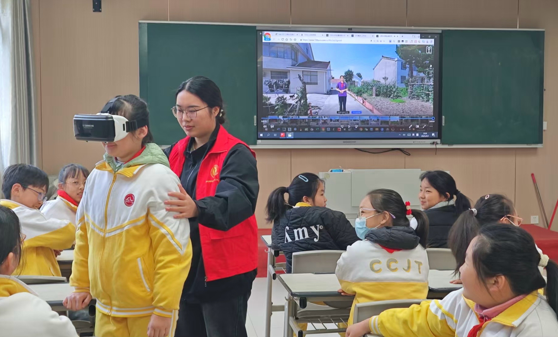 戴上VR眼镜,立刻置身于一片绿油油的稻田之中;转换方向,行走于池塘、田地、民舍之间,一座座烈士纪念碑近在眼前……清明前夕,南通科技职业学院信息与智能工程学院红色基因传承社实践团队走进八一小学。五(6)班学生李张睿体验了一把VR实景互动:“看着里面的一草一木、一砖一瓦,仿佛真的回到了那个年代,这种感觉太真实了!”