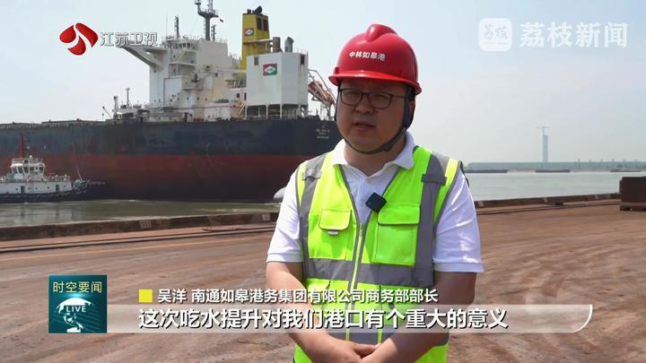 南通如皋港务集团有限公司商务部部长吴洋说:“这次吃水提升对我们港口有个重大的意义,标志着中宁如皋港在江北沿线成为靠泊能力吃水最深的第一大港。客户的运输成本有效地降低了,载货量也增大了。”