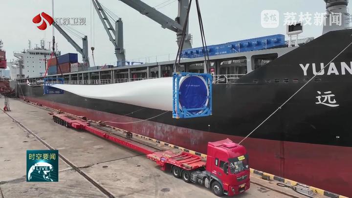 同样喜人的场景也出现在镇江港。5月9日,在镇江海事、引航等部门的精心维护保障下,吃水12米的“宝仪”号货轮装载货物缓缓到港。船舶的成功靠泊,标志着镇江港CAPE型船舶吃水常态化提升至12米,船舶单航次可多装载8000吨货物,每年可节省物流成本近5500万元。不断刷新的吃水深度,不仅标志着长江12.5米深水航道“黄金效能”进一步释放,也折射出江苏经济迸发的强劲活力。5月13日,利比里亚籍“远福”轮装载8套我国自主研发的6.25兆瓦风电设备,从连云港口岸启程驶往共建“一带一路”国家——越南,一举刷新今年连云港港单船风电出口纪录。这批风电设备单片叶片长度近90.5米,是我国上市企业--金风科技外贸出口最长的叶片。