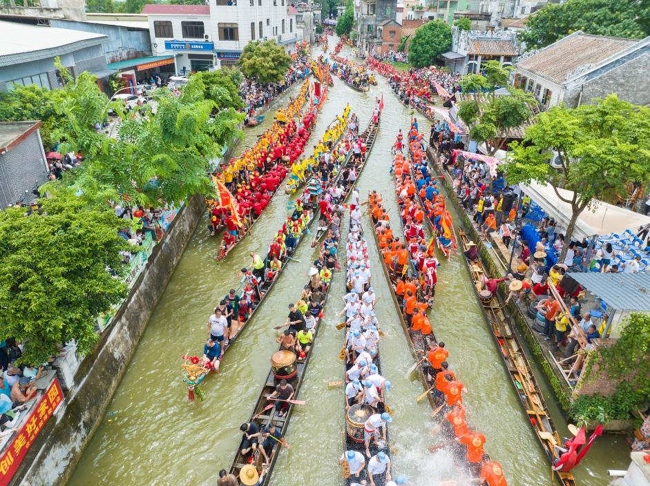 龙舟竞赛历经千年而不衰,近年来频频“出圈”。究其原因,是龙舟凝聚的悠悠历史。从祈福禳灾,到纪念爱国诗人屈原,再到与各种民间活动相结合,龙舟竞渡在千年历史中,不断丰富着文化内涵。高超的造船技艺,诠释着匠人的细致和耐心;浑厚的龙舟号子,传唱着人们祈祷风调雨顺、国泰民安的不变心愿。在岭南地区,一场龙舟盛事,从开始到结束,要经历起龙、采青、赛龙、藏龙、散龙等环节。在满满的仪式感中,一代代人传承着源远流长的龙舟文化,也完成了与古人跨越时空的对话。