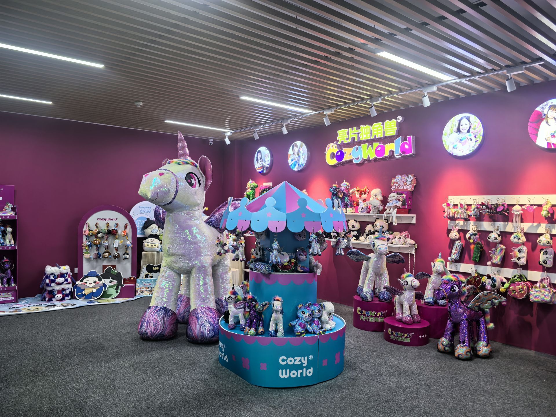 在斯特普公司展厅内,各种款式的亮片独角兽引人注目。“这是我们自主研发的IP,是用来打造品牌的拳头产品。”公司负责人魏华良说,“IP之路有两条,一是贴牌生产授权的IP产品,但这条路有风险,完全依靠授权IP销售产品容易造成对IP的依赖,一旦IP不火或者版权方不授权了,企业会非常被动。第二条路,就是打造自有IP,这条路很难,但正是我们所选择的。”