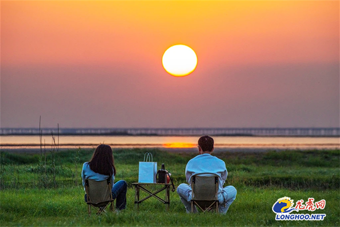 傍晚,石臼湖绽放金色晚霞,波光粼粼的水面上,成双成对的鱼儿在水面上旋转跳跃、摇尾嬉戏,不时泛起涟漪,让人驻足沉醉。溧水区和凤镇张许村东岸日落餐厅的工作人员把这一美景拍下发到朋友圈——“石臼湖的日落永远浪漫”。
