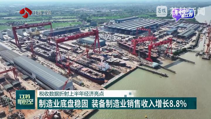 增值税发票数据显示,上半年,制造业企业销售收入同比增长4.9%,特别是装备制造业、数字产品制造业、高技术制造业销售收入同比分别增长8.8%、6.2%和9.5%,反映出全省工业经济稳步增长,实体经济稳中有进,制造业高端化、数字化转型加快推进。在江苏新韩通船舶重工有限公司,企业正加紧赶制多艘82000载重吨的新型散货船。这一船型搭载的主机达到国际最新排放标准和能效标准,大大降低能耗和碳排放,受到海外客户青睐。凭借产品的技术优势,上半年企业销售收入达到18亿元,同比增长10%,同时享受到相关税收优惠超2000万元。