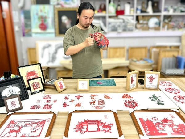 当“苏超”遇上“非遗”,会擦出怎样的火花?在非遗“兴化剪纸”代表性传承人解善彪的工作室内,这个“90后”小伙正潜心创作“苏超”元素的剪纸作品。