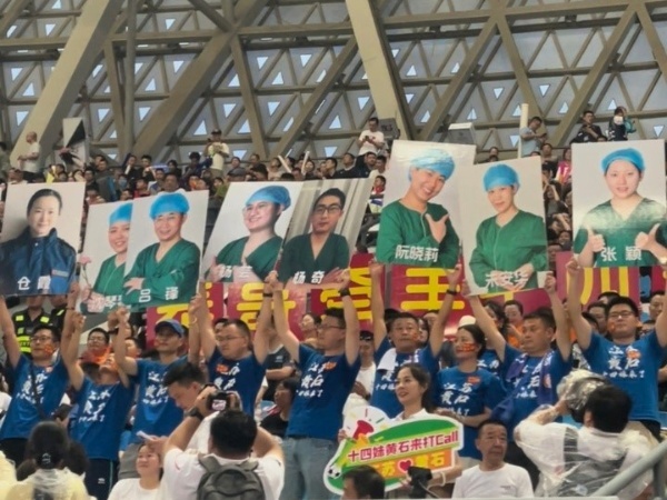 “比赛当晚,我就坐在黄石助威方阵。”江苏援黄石医疗队泰州队员仓霞说,当看到黄石助威方阵举起12张照片时,她的泪水不禁流了下来。“孩子刚放暑假,带她去黄石旅游的行程已经在计划里了。”