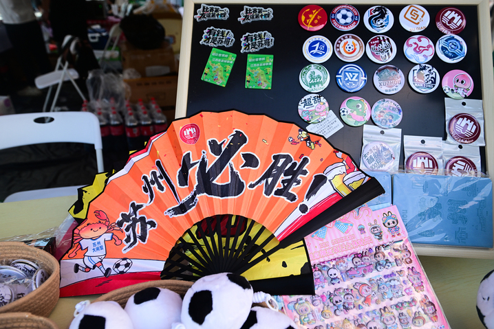 苏州构建“足球+文旅”消费新场景,设置摊位推出各类产品,实行优惠销售。图/视觉中国
