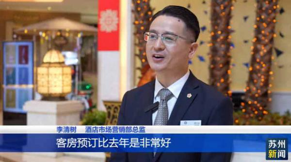 酒店市场营销部总监李清树说,客房预订比去年是非常好,特别是在“苏超”比赛的当天,客房出租率跟周日的出租率同期相比,净增40%以上,还是非常火爆的。下个周末主场比赛的客房预定情况,现在从系统里面看还是非常好的,也有很多外地的球迷,还有客场的球迷打电话在咨询住房的事宜。
